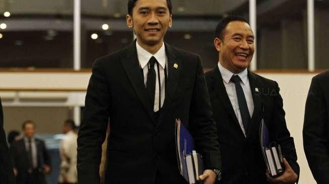 Agus yang didampingi istrinya Anisa Pohan dan Ibas yang juga didampingi istrinya Siti Rubi Aliya Radjasa datang sekitar pukul 10.30 WIB. Mereka kompak mengenakan baju batik warna biru.