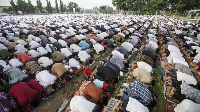 Pelaksanaan Salat Idul Fitri dipimpin imam Kiai Sulam dan khatib Marjuki.
